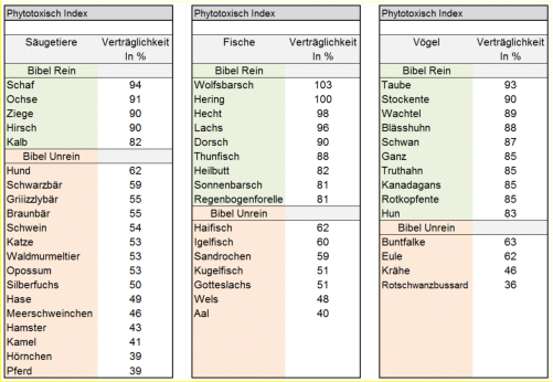 Gottes Wort ~ SpeisegeboteDas ist nur eine Antwort die wir bekommen wenn wir eine Frage stellen.Wer Von Euch bis zum Ende lesen kann ist wahrlich gesegnet und wird Verständnis dafür bekommen. Nebenbei noch die Antwort wo viele sich streiten.Sind Die Speisegebote Abgeschafften durch Yeshua = Jesus Christus (Das Evangelium)? Wieso soll ein Mensch danach fragen was gut ist zum Essen.Der Mensch ist einfach nur was es bekommt, oder was es sich gerade beschaffen kann? Wer fragt sich heutzutage schon was es wirklich auf sich oder in sich einnimmt?Der Durchschnitts Mensch (Mann) nimmt einfach was die Liebende frau gekocht hat.Am besten ohne zu muren und mit einem wahrhaftigen lob. (Danke liebes.) Der Herr unser Himmlischer Vater gibt uns auch in dieser Hinsicht bestimmte antworten.Impulse die wir frei sind anzunehmen. Wir die den Herrn lieben und auch seine liebe erwidern wollen wie sein Geliebter Sohn Yeshua für uns Jesus Christus getan hat.Sprüche 1:5 Wer weise ist der hört zu und bessert sich; wer verständig ist, der lässt sich raten,Sprüche 3:5 Verlass dich auf den HERRN von ganzem Herzen und verlass dich nicht auf deinen Verstand; Sprüche 3:6 sondern gedenke an ihn in allen deinen Wegen, so wird er dich recht führen. 1Mose 7:1 Und der HERR sprach zu Noah: Gehe in den Kasten, du und dein ganzes Haus; denn ich habe dich gerecht ersehen vor mir zu dieser Zeit. 1Mose 7:2 Aus allerlei reinem Viehnimm zu dir je sieben und sieben, das Männlein und sein Weiblein; von dem unreinen Viehaber je einPaar, das Männlein und sein Weiblein. 1Mose 7:3 Desgleichen von den Vögeln unter dem Himmel je sieben und sieben, das Männlein und sein Weiblein, auf dass Same lebendig bleibe auf dem ganzen Erdboden. 1Mose 7:4 Denn von nun an über siebenTage will ich regnenlassen auf Erden vierzigTage und vierzigNächte und vertilgen von dem Erdboden alles, was Wesen hat, was ich gemacht habe. 1Mose 7:5 Und Noah tat alles, was ihm der HERR gebot.3Mose 7:26 Und kein Blut sollt ihr essen in allen euren Wohnsitzen, es sei von Vögeloder vom Vieh. 3Mose 7:27 Jede Seele, die irgend Blut isst, selbige Seele soll ausgerottet werden aus ihren Völkern.3Mose 11:44 Denn ich bin Jahwe, euer Gott; so heiliget euch und seid heilig, denn ich bin heilig. Und ihr sollt euch selbst nicht verunreinigen durch irgendein Gewürm, das sich auf der Erde regt. 3Mose 11:45 Denn ich bin Jahwe, der euch aus dem Lande Ägypten heraufgeführt hat, um euer Gott zu sein: so seid heilig, denn ich bin heilig.3Mose 11:46 Das ist das Gesetz von dem Vieh und dem Vögel und von jedem lebendigen Wesen, das sich in den Wassern regt, und von jedem Wesen, das auf der Erde kriecht; 3Mose 11:47 um zu unterscheiden zwischen dem Unreinen und dem Reinen, und zwischen dem Getier, das gegessen wird, und dem Getier, das nicht gegessen werden soll. 3Mose 11:39 Und wenn eines von dem Vieh stirbt, das euch zur Nahrung dient: wer dessen Aas anrührt, wird unrein sein bis an den Abend. 3Mose 11:40 Und wer von dessen Aas isset, soll seine Kleider waschen und wird unrein sein bis an den Abend; und wer dessen Aas trägt, soll seine Kleider waschen und wird unrein sein bis an den Abend. 3Mose 11:42 Alles was auf dem Bauchekriecht, und alles, was auf Vierengeht, bis zu allem Vielfüßigenvon allem Gewimmel, das auf der Erde wimmelt: ihr sollt sie nichtessen; denn sie sind ein Gräuel. 3Mose 11:1 Und Jahwe redete zu Mose und zu Aaron und sprach zu ihnen:Vieh:3Mose 11:2 Redet zu den Kindern Israel und sprechet: Dies sind die Tiere, die ihr essen sollt von allen Tieren, die auf der Erde sind. 3Mose 11:3 Alles, was gespaltene Hufe, und zwar ganz gespaltene Hufe hat, und wiederkäut unter den Tieren, das sollt ihr essen. 3Mose 11:4 Nur diese sollt ihr nicht essen von den wiederkäuenden und von denen, die gespaltene Hufe haben: das Kamel, denn es wiederkäut, aber es hat keine gespaltenen Hufe: unrein soll es euch sein; 3Mose 11:5 und den Klippendachs, denn er wiederkäut, aber er hat keine gespaltenen Hufe: unrein soll er euch sein; 3Mose 11:6 und den Hasen, denn er wiederkäut, aber er hat keine gespaltenen Hufe: unrein soll er euch sein; 3Mose 11:7 und das Schwein, denn es hat gespaltene Hufe, und zwar ganz gespaltene Hufe, aber es wiederkäut nicht: unrein soll es euch sein.3Mose 11:26 Jedes Tier, das gespaltene Hufe, aber nicht ganz gespaltene Hufe hat und nicht wiederkäut: Unrein sollen sie euch sein; jeder, der sie anrührt, wird unrein sein. 3Mose 11:27 Und alles, was auf seinen Tatzen geht, unter allem Getier, das auf Vieren geht, sie sollen euch unrein sein; jeder, der ihr Aas anrührt, wird unrein sein bis an den Abend. 3Mose 11:28 Und wer ihr Aas trägt, soll seine Kleider waschen und wird unrein sein bis an den Abend; sie sollen euch unrein sein. 3Mose 11:29 Und diese sollen euch unrein sein unter dem Gewimmel, das auf der Erde wimmelt: der Maulwurf und die Maus und die Eidechse nach ihrer Art, 3Mose 11:30 und die Anaka und der Koach und der Letaah und der Chomet und das Chamäleon. Gevögel:3Mose 11:21 Nur dieses sollt ihr essen von allem geflügelten Gewürm, das auf Vieren geht: was Schenkel hat oberhalb seiner Füße, um damit auf der Erde zu hüpfen. 3Mose 11:22 Diese sollt ihr von ihnen essen: den Arbeh nach seiner Art und den Solham nach seiner Art und den Chargol nach seiner Art und den Chagab nach seiner Art. 3Mose 11:23 Aber alles geflügelte Gewürm, das vier Füße hat, soll euch ein Gräuel sein. 3Mose 11:13 Und diese sollt ihr verabscheuen von den Vögeln; sie sollen nicht gegessen werden, ein Gräuel sind sie: den Adler und den Beinbrecher und den Meeradler, 3Mose 11:14 und den Falken und die Weihe nach ihrer Art, 3Mose 11:15 alle Raben nach ihrer Art, 3Mose 11:16 und die Straußhenne und den Straußhahn und die Seemöwe und den Habicht nach seiner Art, 3Mose 11:17 und die Eule und den Sturzpelikan und die Rohrdommel, 3Mose 11:18 und das Purpurhuhn und den Pelikan und den Aasgeier, 3Mose 11:19 und den Storch und den Fischreiher nach seiner Art